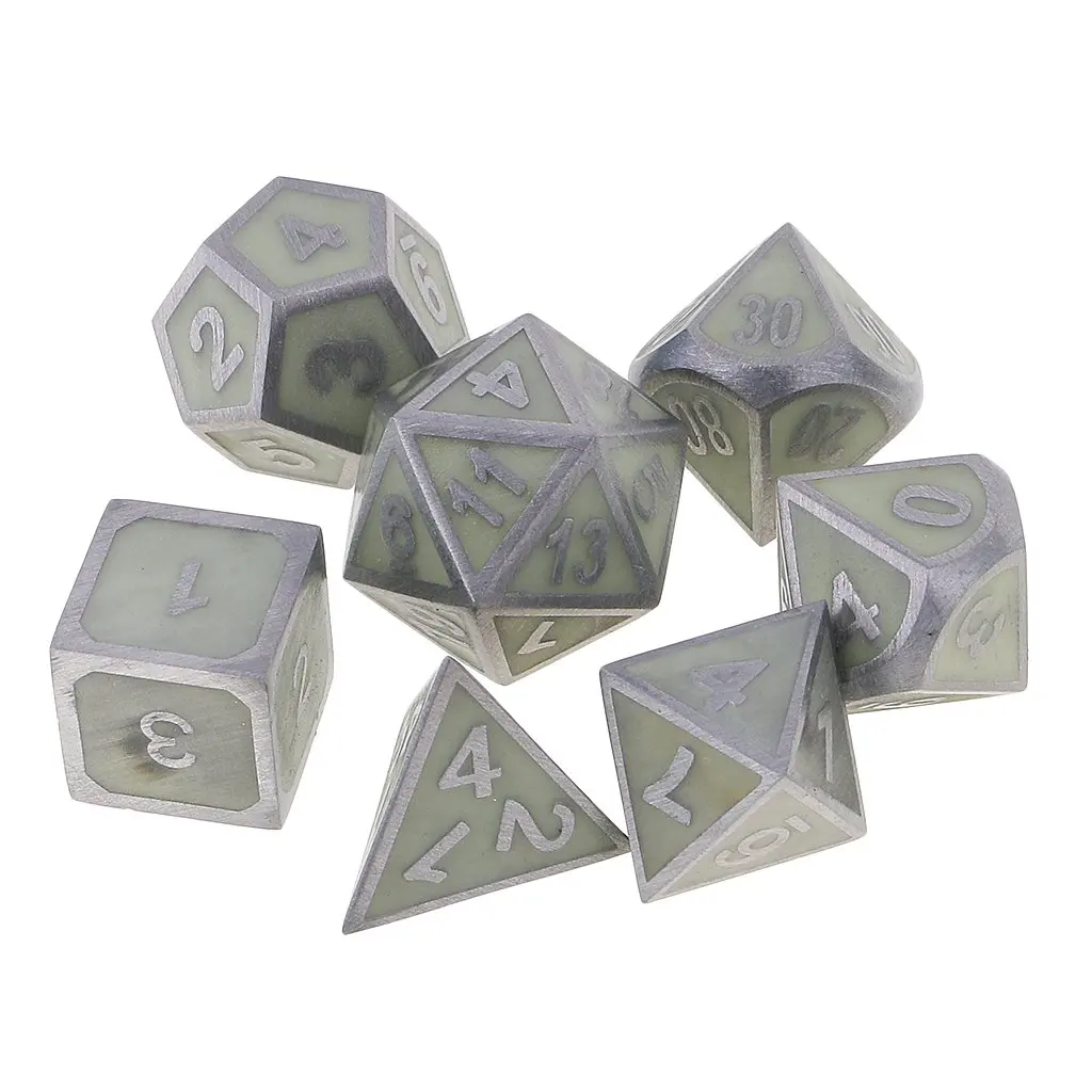 7pcs Polyhedral Dice Night Light Luminous Bright D4-D20 Metal Digital Dices for Dungeons Dragons Ta